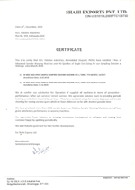 Shahi Exports Shimoga RI 6001 Certificate
